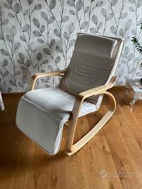 Comoda sedia da relax, modello tipo Poang (Ikea), con poggiapiedi regolabile in altezza.