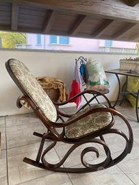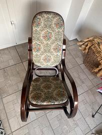 Sedia a dondolo vintage,rivestimento in tessuto fantasia,struttura in legno robusta.ottime condizioni.
