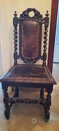 Sedia a rocchetto in legno massiccio e con seduta in pelle. Misure: 105x45x44 Visionabile e ritirabile a Quarto (Genova). Ritiro a carico acquirente.
