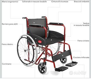 AIESI® Sedia a Rotelle pieghevole leggera ad autospinta per disabili ed anziani AGILA BASIC, Braccioli e Poggiapiedi fissi, Cintura di sicurezza, sacca portaoggetti, freni in acciaio. Come nuova, usata solo un mese e pochissimo. Ritiro del prodotto al mio domicilio, pagamento in contanti alla consegna. No altre forme di pagamento.