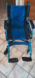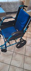 Sedia a rotelle da transito, Pirámide, Carrozzina pieghevole, Alluminio, Freno sulle maniglie, Per anziani, Poggiapiedi, Braccioli, Marchio ce, Leggera, Seduta 46 cm, Blu