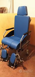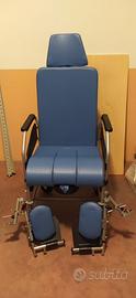 Sedia a rotelle con spalliera reclinabile, poggiatesta rimovibile, poggiapiedi, freni. La sedia è nuova, acquistata nel