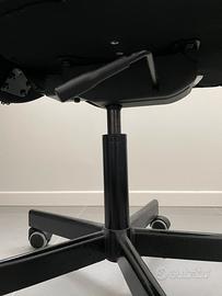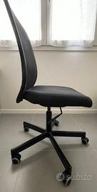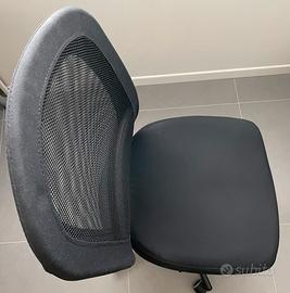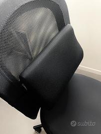 Due sedie a rotelle per scrivania nere per smartworking/ufficio. Schienale leggermente reclinabile e possibilita di regolazione dell’altezza con apposita leva situata sotto il sedile. Le sedie sono dotate di braccioli che possono anche essere tolti a piacimento. Vendo unitamente a cuscinetto lombare. Prezzo esposto é riferito per ciascuna sedia.