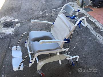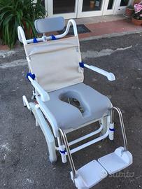 Vendo sedia a rotelle utile per persone con difficoltà motorie, ad essere utilizzata come WC oppure per fare il bagno grazie al sistema che la rende reclinabile come si vede nelle foto. Usato ma in ottimo stato. Possibilità di ritiro di persona.