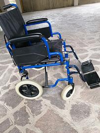Sedia a rotelle comoda da trasportare, si piega e ha due manici. Non leggerissima ma pratica. Usata principalmente in casa ma anche fuori. Pedali che si tolgono, freno. Solo ritiro a Castenaso (BO)