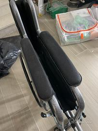 Sedia a rotelle, richiudibile con ruote di qualità e poggiapiedi seduta in tessuto. Marchio Mobiclinic Comoda e resistente