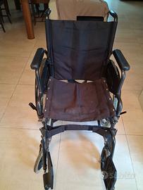Sedia a rotelle con copertoni da cambiare. Con cintura di sicurezza, pedane poggia piedi estraibili, pieghevole. Ritiro sul posto