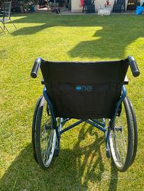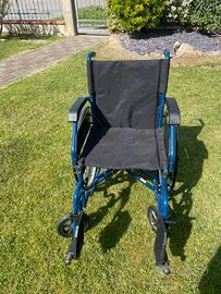 Sedia a rotelle chiudibile, con appoggio per i piedi e ampio tascone sullo schienale