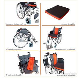 Sedia a Rotelle Pieghevole in Alluminio Leggera ad Autospinta – Carrozzina con Seduta e Schienale Imbottiti, Sfoderabili e Lavabili, con Tasca Posteriore