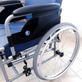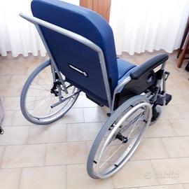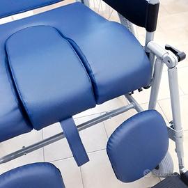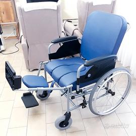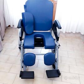 Sedia a rotelle autospinta, reclinabile nello schienale e nelle gambe, dotata di foro nel sedile con bacinella di raccolta, dotata anche di appoggia polpacci, nuova mai usata.