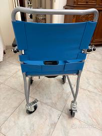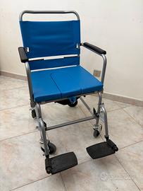 In vendita a 100 € con ritiro in loco di Sedia comoda pieghevole a 4 ruote per anziani quasi nuova. Dotata di: ruote con secchio rimovibile (Wc estraibile) pedane ribaltabili, estraibili e regolabili,