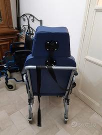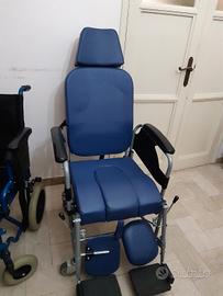 vendo sedia a rotelle con struttura in acciaio,schienale imbottito estraibile e reclinabile sedile imbottito e comodo,fiancate estraibili con braccioli imbottiti,pedane elevabili ,ribaltabili, estraibili e regolabili in altezza.Contenitore estraibile per igiene personale ha 4 ruote con bloccaggio.