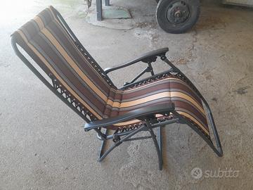 vendo come da foto sedia a sdraio marrone e beige basculante reclinabile, struttura robusta e regolabile, ideale per giardino o terrazza, praticamente nuova, pagata 70 euro, usata pochissime volte, nessun segno di usura o danneggiamento.