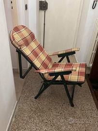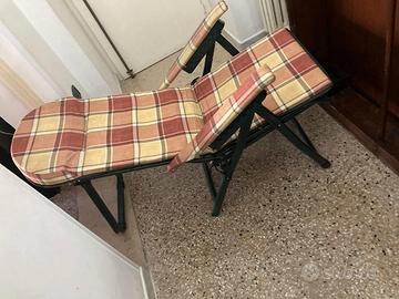 Comodissima sedia a sdraio con telaio in metallo usata due settimane per assistenza, notti in ospedale. come da foto ha: seduta relax in stoffa; schienale reclinabile sino a diventare lettino; poggiapiedi anch'esso in stoffa. E' pieghevole, non ingombrante e molto leggera.