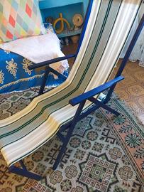 sedia a sdraio vintage (perfetta) di colore blu..con tela appena sostituita (mai usata) vendo a Firenze consegna a mano.