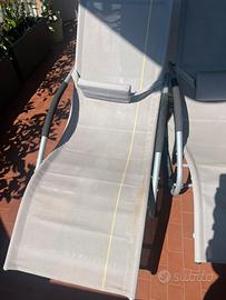 2 Sedie a Sdraio con Fermi Antiribaltamento, Cuscino Regolabile, Telaio in Acciaio, Tessuto Respirante, Tasca Portaoggetti, 156,2 x 97,3 x 151 cm, Grigio Tortora NON VENDIBILE SEPARATAMENTE. Facilmente trasportabile perchè smontate e imballate. PREZZO NON TRATTABILE. CONDIZIONI OTTIME