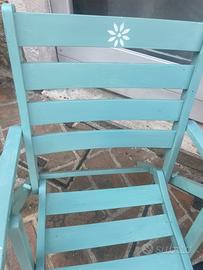 Sedia a sdraio vintage pieghevole in legno decorata in color verde menta. Posso spedire o consegnare.