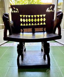 Come da foto sedia africana in legno massiccio proveniente dalla Nigeria realizzata interamente a mano da un unico pezzo.