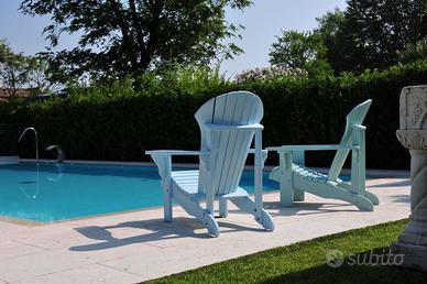 Sedia Americana Adirondack in legno di Larice,con porta calice a scomparsa.Verniciata azzurro.Nuova da esposizione