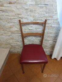struttura in legno con seduta imbottita rivestita in similpelle rossa, nello stile di Paolo Buffa.