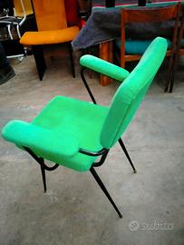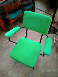 Sedia verde in metallo anni '60, completamente ritapezzata.