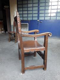 SEDIA ANTICA LEGNO PREGIATO CUOIO CON BRACCIOLI misure 44X54X100 COLONIALE SPAGNOLA
