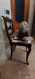 La sedia si vende completa di cuscino fatto su misura e realizzato a mano artigianalmente con ricami realizzati a macchina, passanastro in pizzo macramè e nastro in pelo di lapin marrone. Viene completato da due dolcissimi fiocchi che accompagnano l'eleganza e la forma della sedia. il cuscino nell'angolo presenta una medaglietta col logo di chi lo ha realizzato.