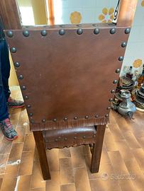 Sedia antica in legno du noce con pelle e cuoio e borchie devorative, foto per vedere difetto