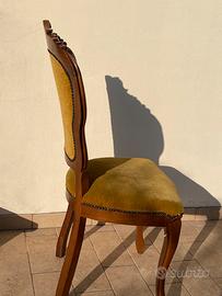 Sedia antica, anni 70. Vintage. Materiali: legno noce e velluto. Presenta qualche segno di usura. Disponibile fino a 6 pz. Prezzo indicato per sedia.