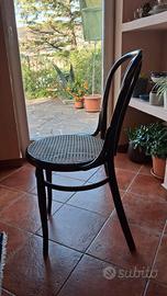 Vendo elegante sedia antica in paglia di Vienna, legno originale e seduta con impagliatura rifatta tradizionalmente. Struttura in legno color noce, solida e senza difetti; seduta integra, senza rotture; linee classiche.