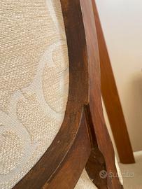Seduta e schienale imbottiti e rivestiti in tessuto damascato di pregio color Bianco panna nuovo da restauro.