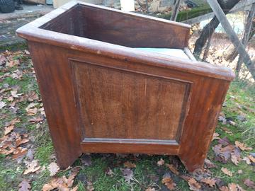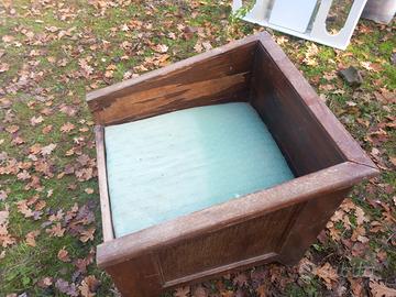 Sedia antica di legno con seduta imbottita. Da restaurare. Misure : 64 cm * 67 cm. alta da terra 66 cm nello schienale 41 cm nella seduta.