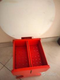 Vendo sedia appendiabiti arancio e bianca. La seduta si apre con due vani portagioie.