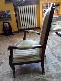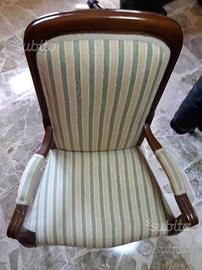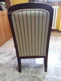Piccola sedia da arredo casa/stanza in legno , rivestita in tessuto. Le misure sono le seguenti ; Altezza 76 cm. , Larghezza 45 cm. , e Lunghezza 36 cm. , sedia come nuova , tenuta molto bene , al prezzo richiesto da aggiungere l'eventuale spesa per il trasporto.