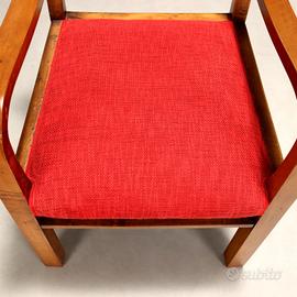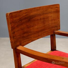 Sedia Art Dco con braccioli con struttura in legno a vista, seduta con tessuto
