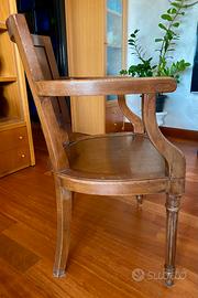 • Caratteristiche: Presenta braccioli curvi e gambe anteriori scanalate, dettagli tipici del design dell'epoca.
