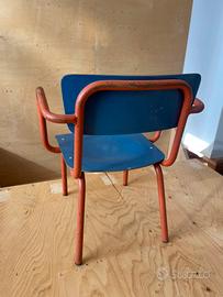 Sedia asilo anni 80 arancio azzurro in ferro e formica