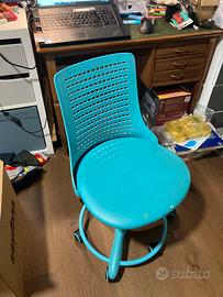 Cagliari Sedia con rotelle per scrivania, colore azzurro. Seduta alta 44 e schienale alto 80 Piccola abrasione sulla seduta davanti. Vista e piaciuta.
