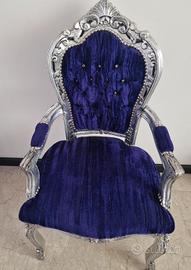 Vendo splendida sedia in stile barocco, rivestita in morbido velluto viola, con raffinata struttura in legno decorata in foglia argento. Un pezzo elegante e scenografico, perfetto per: Salone o camera da letto Studio professionale Atelier o negozio Angolo make-up o postazione trucco 🪑 Condizioni: ottime, tenuta con cura 💎 Struttura solida e stabile 🎨 Design ricercato e di grande effetto Prezzo: 150 euro Per informazioni o per vederla, scrivimi in privato.