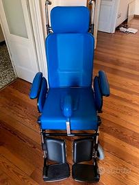 Sedia basculante inclinabile Surace completa di tutto, regolabile in ogni posizione, per anziani e disabili, accessoriata, usata pochissimo in perfetto stato. In regalo con l'acquisto della sedia tavolino con rotelle regolabile in altezza.