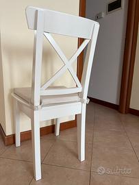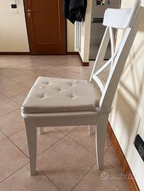 6 SEDIE bianche Ingolf/Rosentorp con cuscini Justina e feltrini antigraffio INCLUSI.