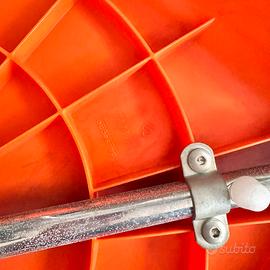 Sedia Blue Bell Dal Segno in plastica arancione. Gambe un po’ ossidate ma che si possono pulire