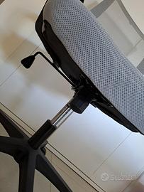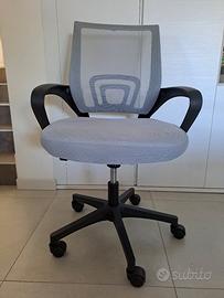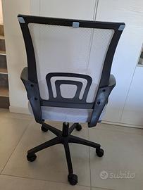 sedia cameretta grigia con schienale traspirante. Regolabile in altezza. Ruote a 5 raggi.