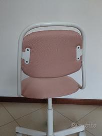 Sedia per scrivania cameretta con rotelle e girevole. Seduta si alza e si abbassa, colore rosa e bianca, misura seduta cm 35x32.