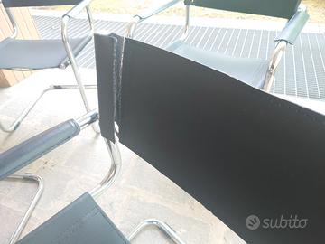 Set di 4 sedie Mart Stam S34 a sbalzo con struttura in acciaio cromato e sedile, schienale e braccioli in vero cuoio, produzione anni '70.