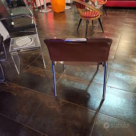 La sedia "Castiglia" di Zanotta è un pezzo vintage iconico disegnato da Achille Castiglioni e Marcello Minale negli anni '70. Realizzata in cuoio marrone e tubolare di ferro cromato. Le sedie sono in buone condizioni, perfette per chi cerca mobili d'epoca ben conservati. Altezza di 80 cm, larghezza di 57 cm e profondità di 68,5 cm. Disponibili 6 pezzi.