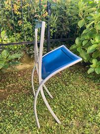 Sedie CATTELAND blue in acciaio color micaceo metallizzato con seduta in cuoio blue.