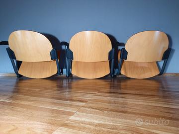 Vendo sedie stile cinema/teatro con ribaltina in legno, con lievi segni d'usura ma tenute bene ed a buon prezzo (€ 30,00 un set da 3 sedie); elementi di fissaggio a terra inclusi