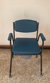 Vendo sedia comoda usata in buone condizioni, ideale per anziani o persone con difficoltà motorie. Struttura in metallo resistente, braccioli imbottiti e seduta con apertura centrale. Dotata di secchio estraibile con coperchio per una facile pulizia. Altezza regolabile con piedini antiscivolo.