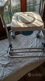 sedia con secchio estraibile capacità 5 L.,Ruote autobloccanti,poggiapiedi ribaltabile,WC/ doccia per anziani ,MAI USATA e veramente NUOVA! Portata fino a 150 kg. Ritiro a mano zona Limena PD.